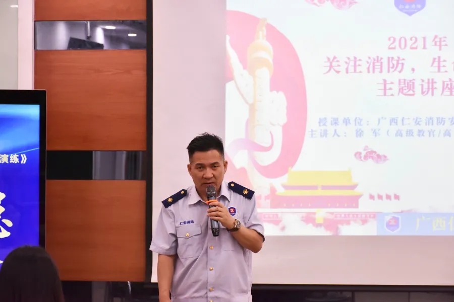 演練前,公司邀請廣西仁安消防安全教育中心徐教官為大家做了消防安全知識講座。