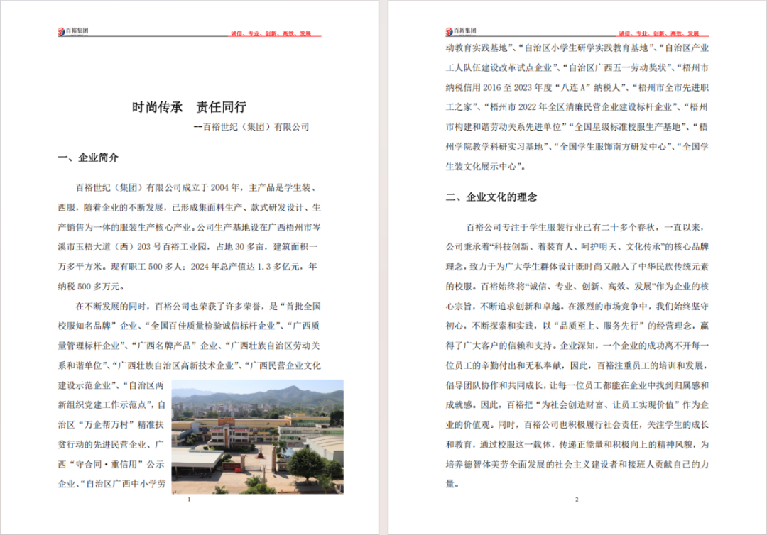 百裕集團自2004年成立以來,始終秉持“誠信、專業(yè)、創(chuàng)新、高效、發(fā)展”的核心宗旨,堅持“為社會創(chuàng)造財富、讓員工實現(xiàn)價值”的企業(yè)價值觀。多年來,集團不僅在學(xué)生裝、西服等主營業(yè)務(wù)領(lǐng)域持續(xù)深耕,更將履行社會責(zé)任融入企業(yè)戰(zhàn)略和日常運營,實現(xiàn)了經(jīng)濟效益與社會效益的協(xié)同發(fā)展。