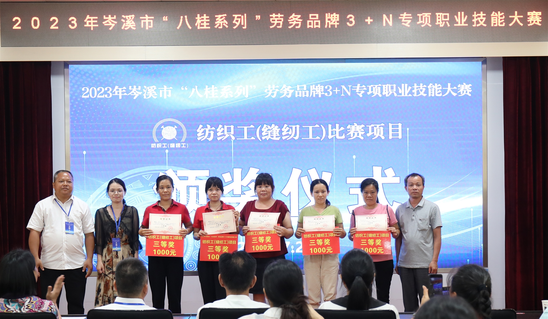百裕世紀(jì) (集團(tuán))有限公司線下車間職工超麗榮獲紡織工 (縫工)比賽項(xiàng)目的一等獎(jiǎng);羅婷婷、陳杏娟2位職工榮獲二等獎(jiǎng);梁鳳、羅獻(xiàn)鳳、覃廣英、莫清云、廖芬藝5位職工榮獲三等獎(jiǎng);陳海蘭、陳志平、張紅潔等12名職工榮獲優(yōu)勝獎(jiǎng)。