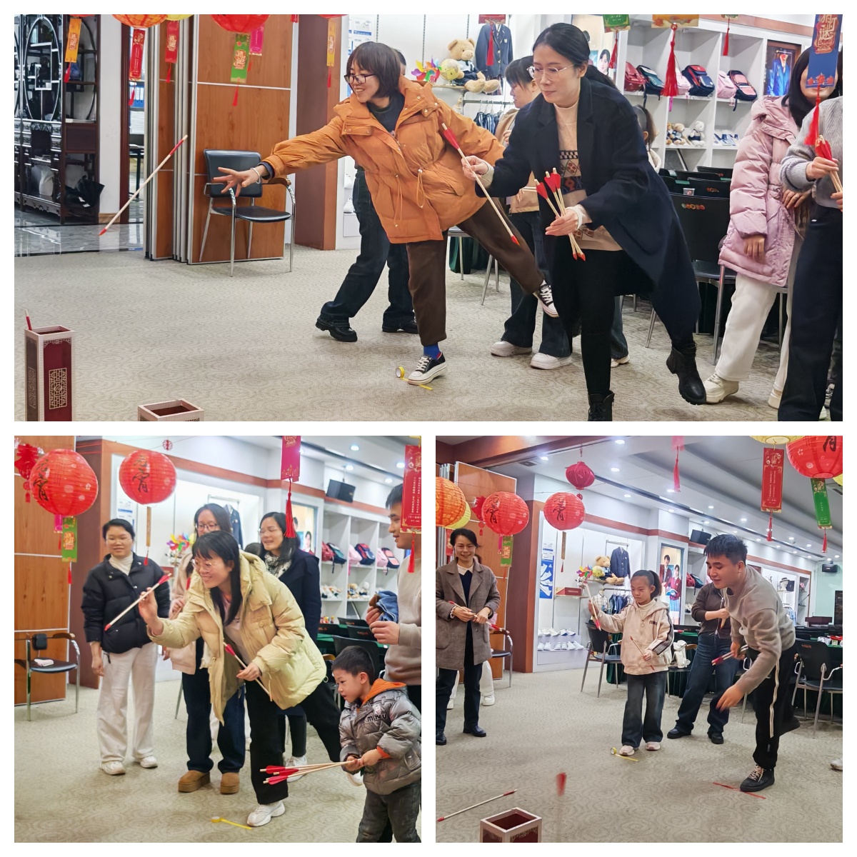 活動(dòng)規(guī)則是每人手持五支箭,站在距離壺一米五遠(yuǎn)的位置,將箭投入壺中,投中數(shù)量多者獲勝。員工們紛紛摩拳擦掌,躍躍欲試。只見(jiàn)各位同事們眼神專注地盯著壺口,手臂輕輕向后揚(yáng)起,然后迅速發(fā)力向壺中投箭。現(xiàn)場(chǎng)歡聲不斷,大家都沉浸在投壺的樂(lè)趣中。